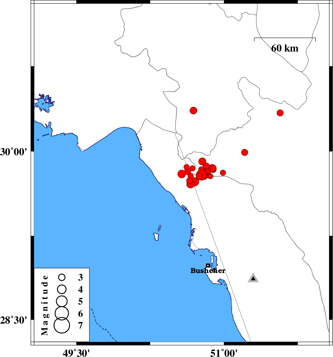 2012/06/08 21:25:50.5 01:55:50.5 29.7850.7546 ML:2.9 Bushehr Province, 32 km North-East of Bandar-e genaveh