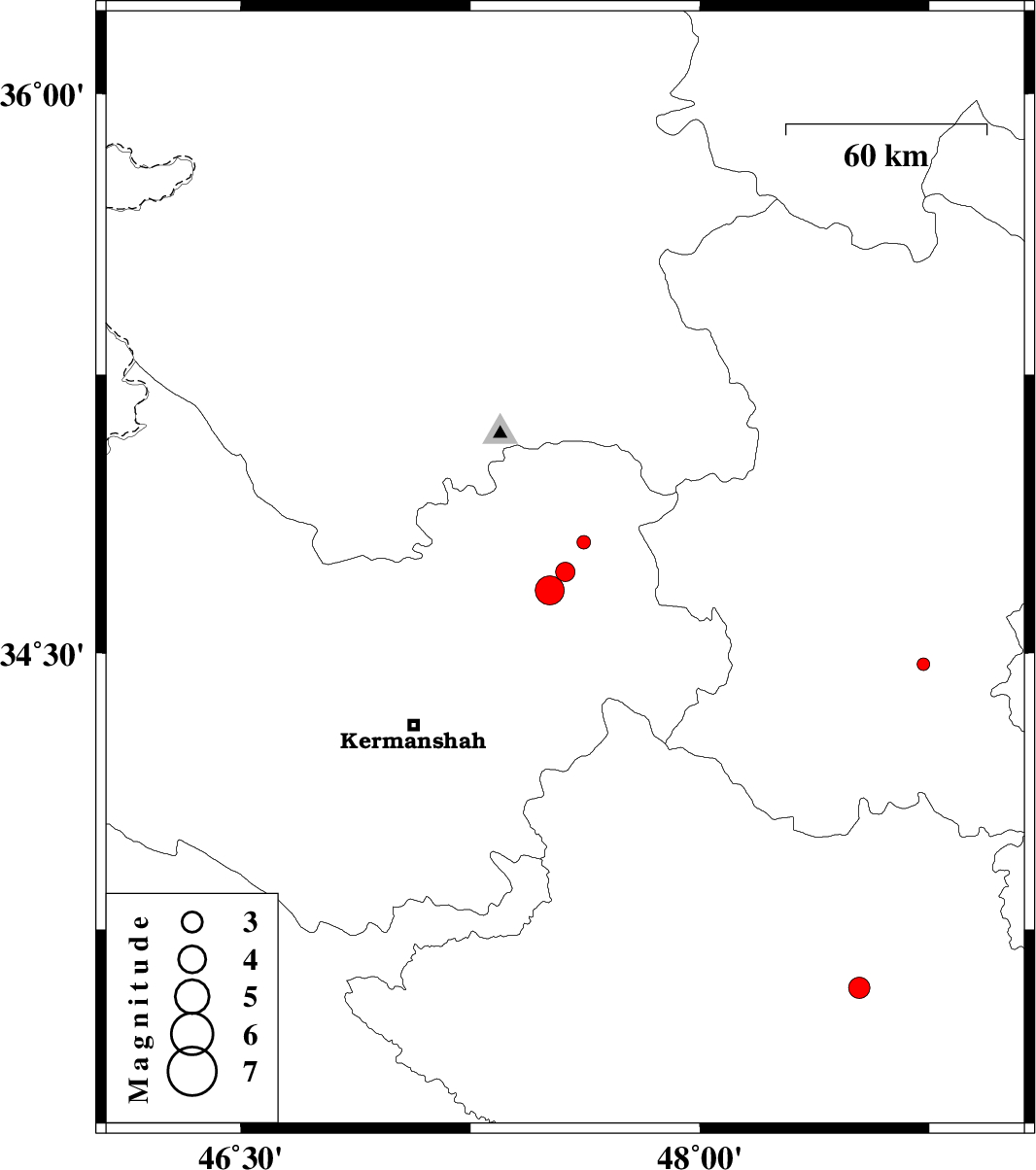 | 2012/07/14 | 00:55:02.8 | 05:25:02.8 | 34.67 | 47.51 | 15 | ML:4.2 | Kermanshah Province, 15 km South of Sonqor | ||