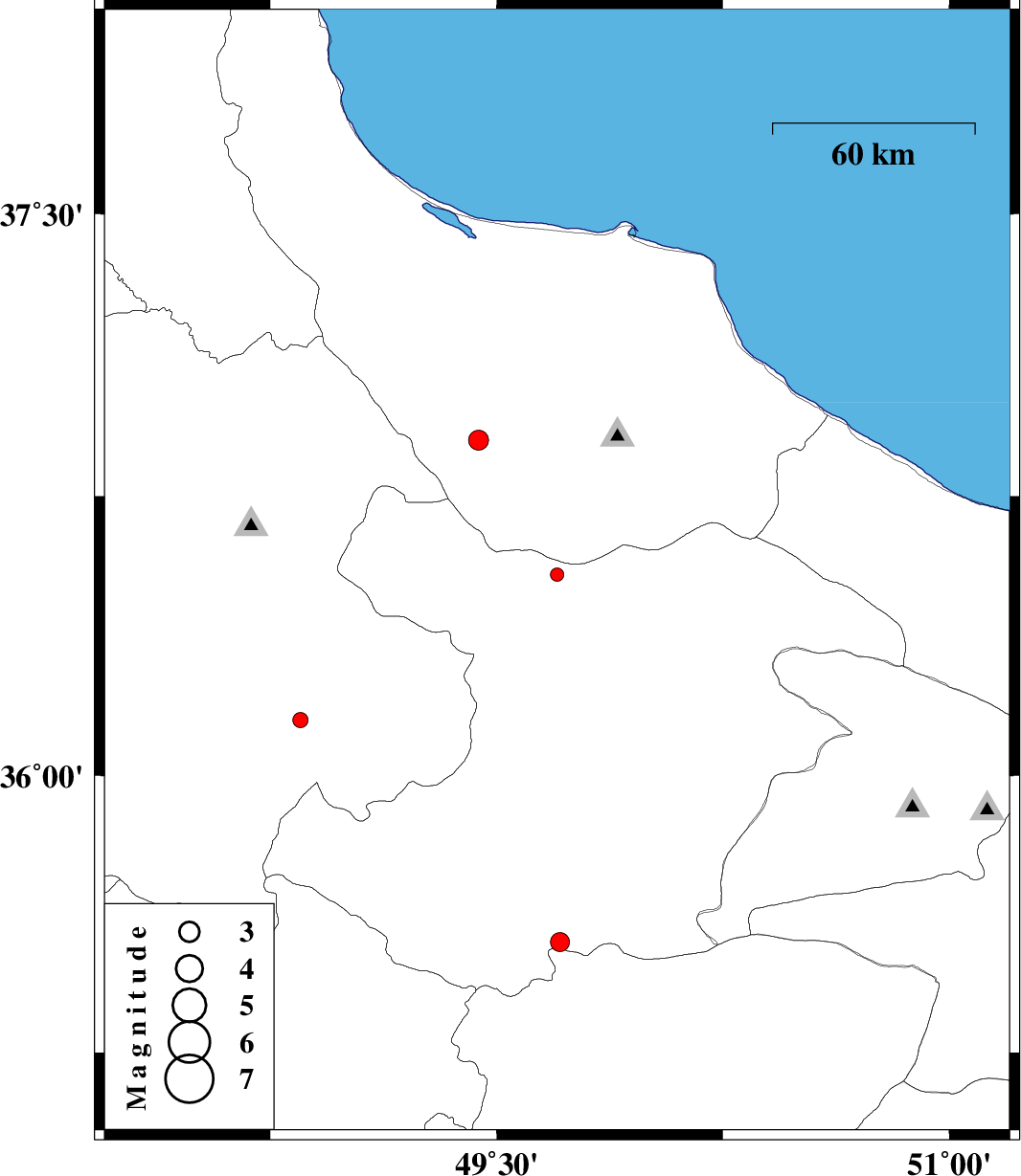 | 2012/07/25 | 09:37:36.2 | 14:07:36.2 | 36.54 | 49.7 | 14 | ML:2 | Ghazvin Province, 53 km North of Takestan | ||