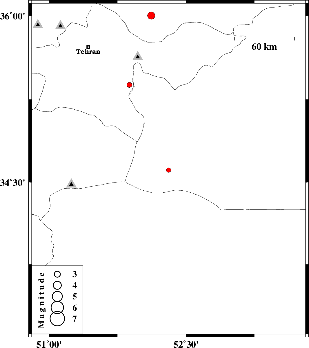 | 2012/07/21 | 06:22:43.7 | 10:52:43.7 | 35.38 | 51.88 | 18 | ML:2.5 | Tehran Province, 21 km East of Varamin |