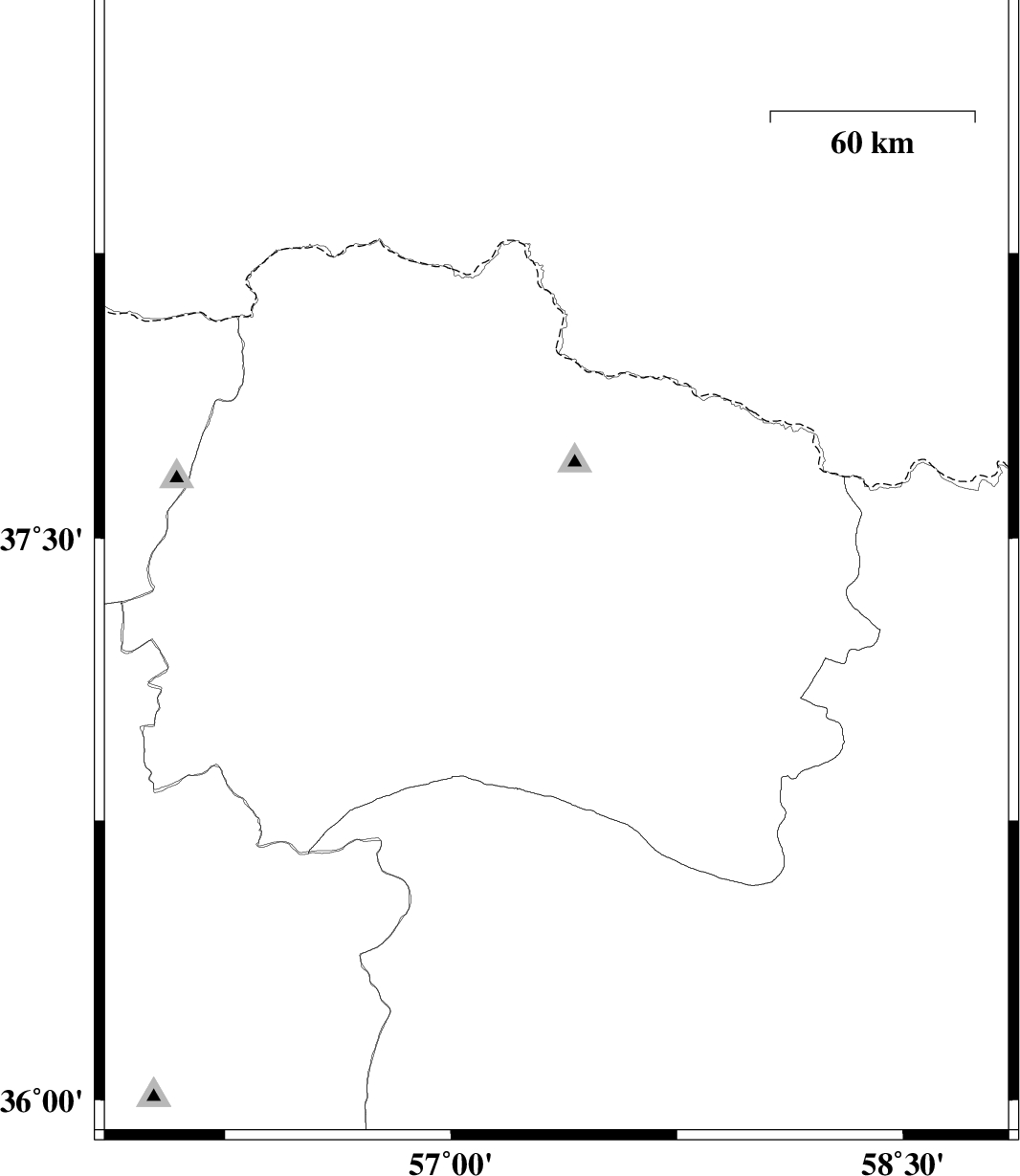 | 2012/08/09 | 03:52:00.7 | 08:22:00.7 | 37.81 | 57.33 | 14 | ML:2.2 | Khorasan(north) Province, 37 km North of Bojnurd | ||