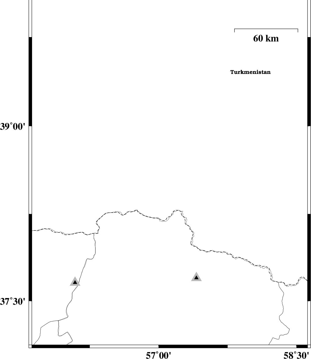 | 2012/08/09 | 03:52:00.7 | 08:22:00.7 | 37.81 | 57.33 | 14 | ML:2.2 | Khorasan(north) Province, 37 km North of Bojnurd | ||