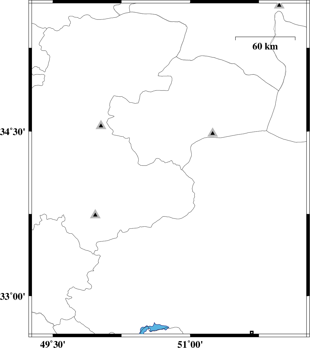 | 2012/08/12 | 12:16:10.3 | 16:46:10.3 | 34.15 | 50.77 | 23 | ML:1.8 | Markazi Province, 19 km North of Delijan | ||