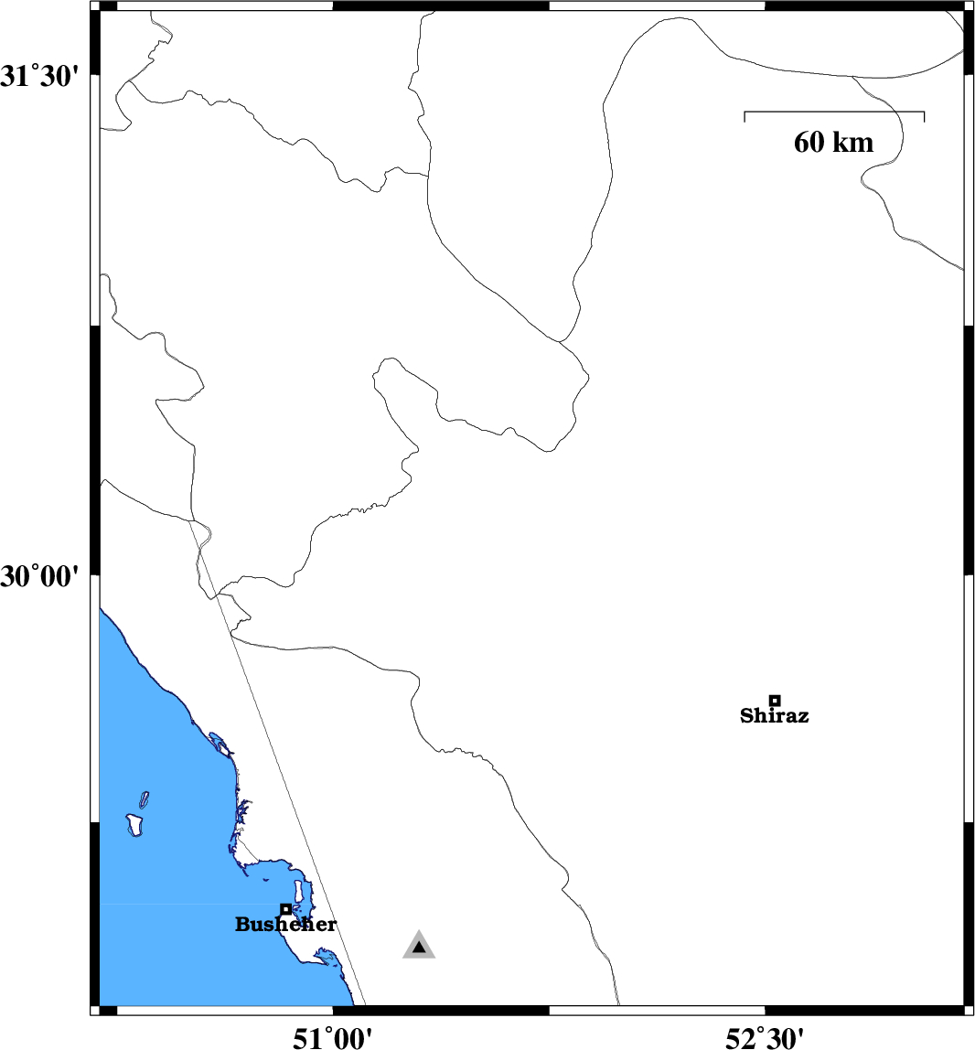 | 2012/08/14 | 13:01:53.3 | 17:31:53.3 | 29.85 | 51.66 | 43 | ML:3.4 | Fars Province, 26 km North of Kazerun |