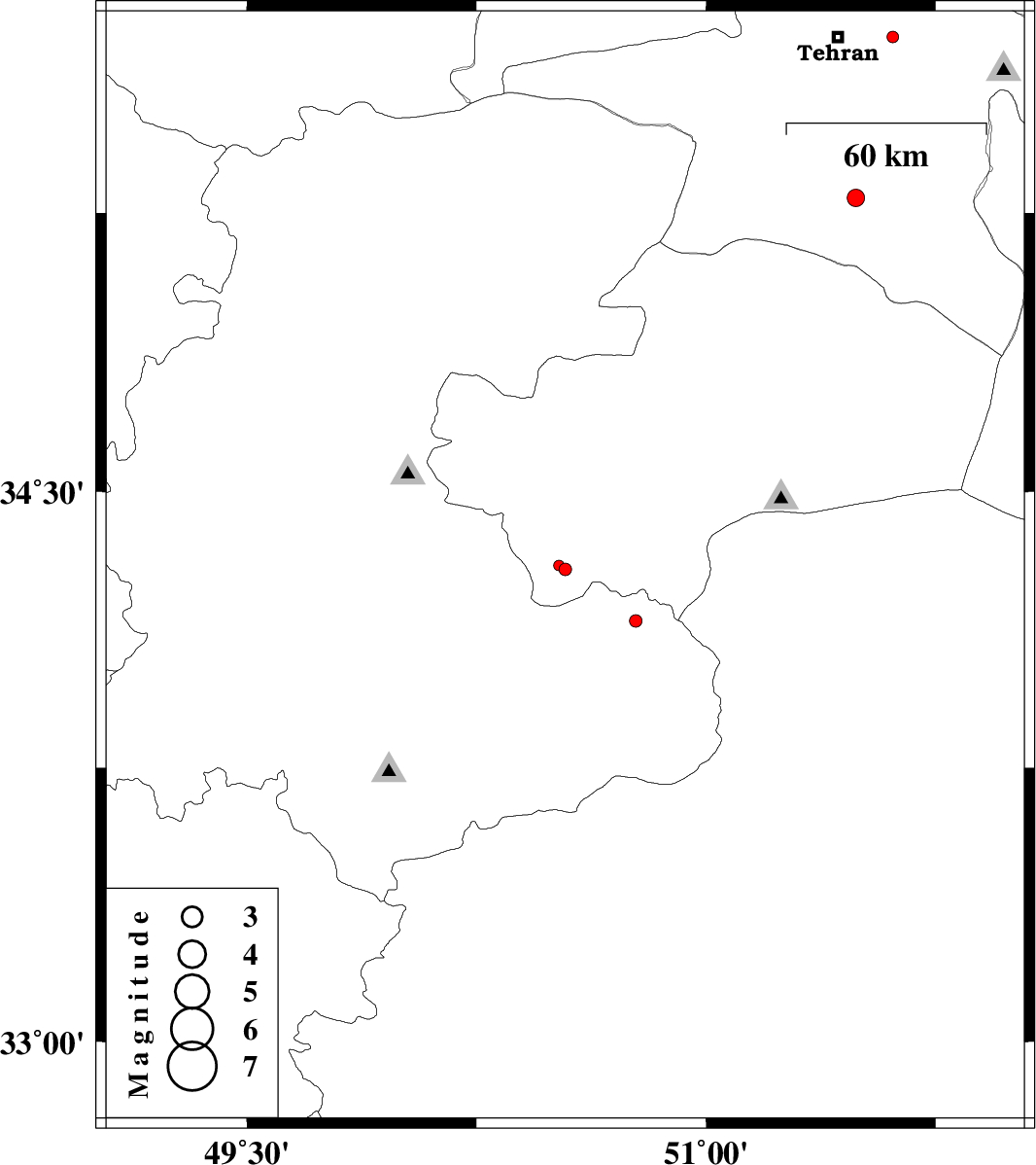 | 2012/08/12 | 12:16:10.3 | 16:46:10.3 | 34.15 | 50.77 | 23 | ML:1.8 | Markazi Province, 19 km North of Delijan | ||