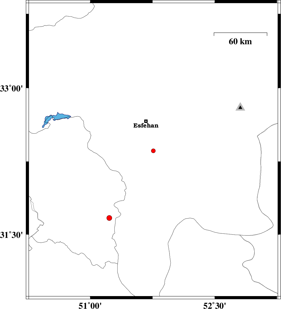 | 2012/10/01 | 11:42:23.7 | 15:12:23.7 | 32.36 | 51.76 | 14 | ML:2.2 | Esfahan Province, 32 km East of Mobarakeh | ||