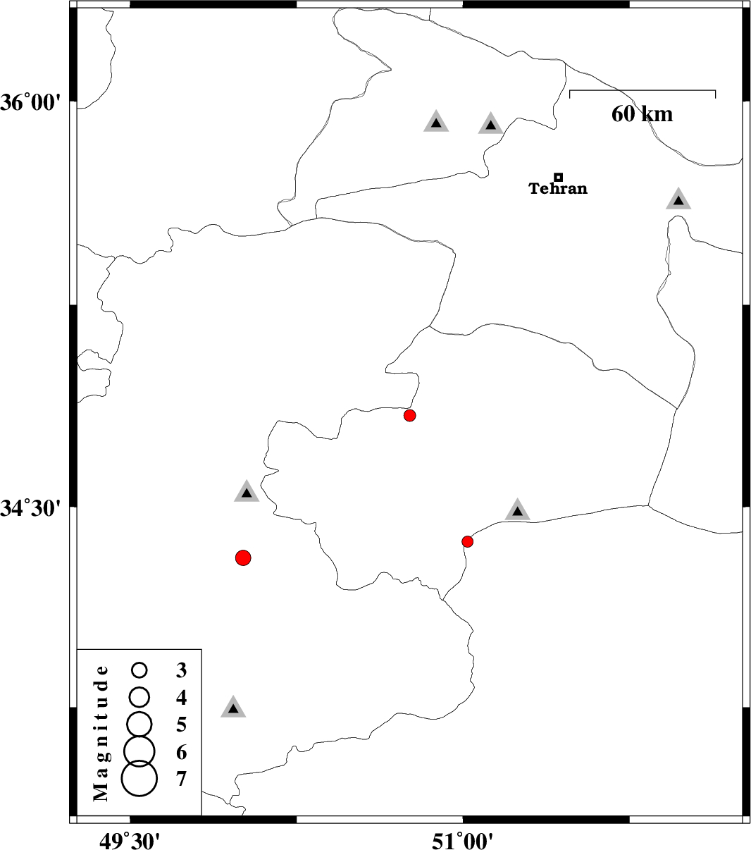 | 2012/10/07 | 15:30:07.4 | 19:00:07.4 | 34.31 | 50.01 | 15 | ML:3.1 | Markazi Province, 24 km South of Ashtiyan |