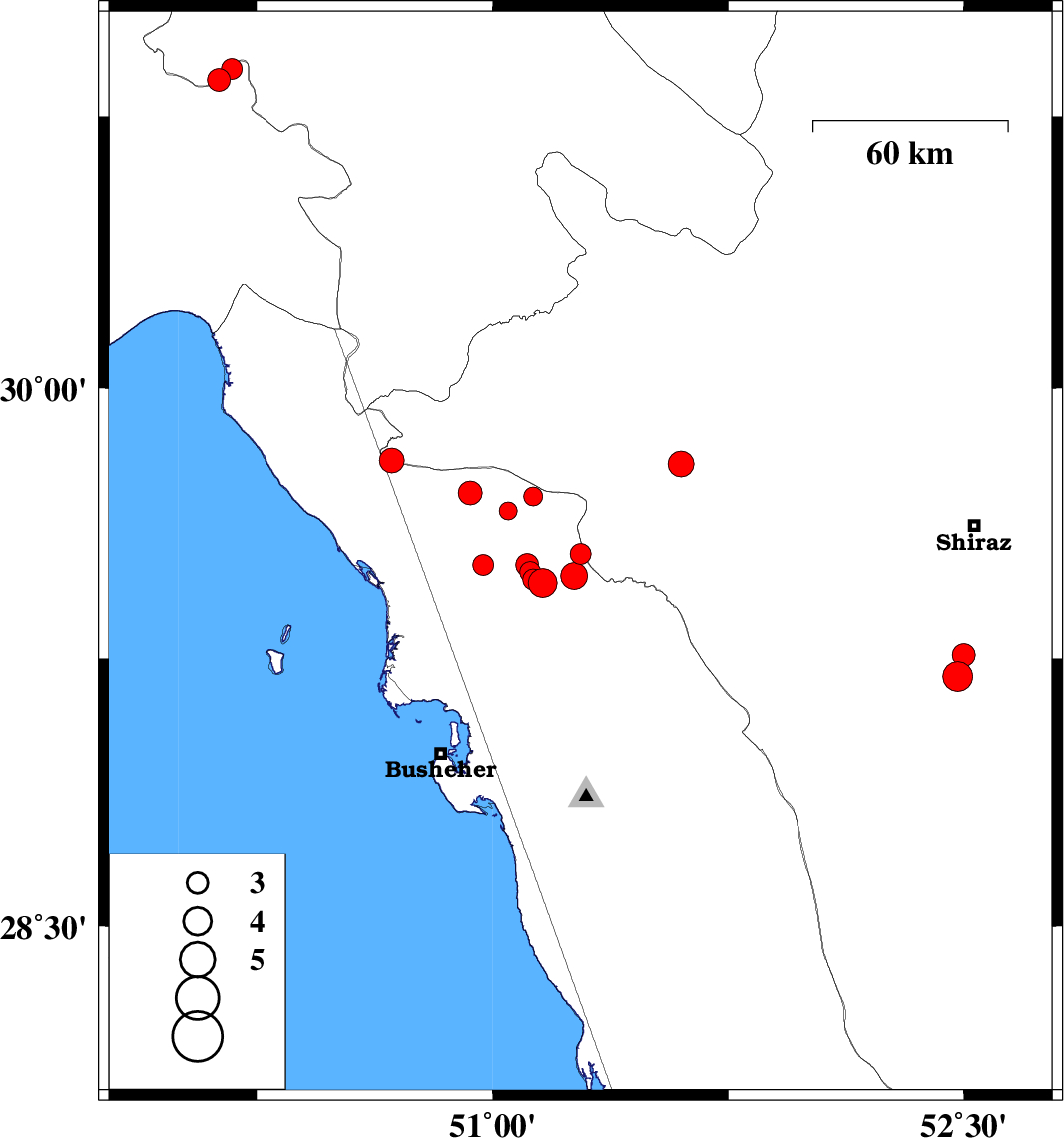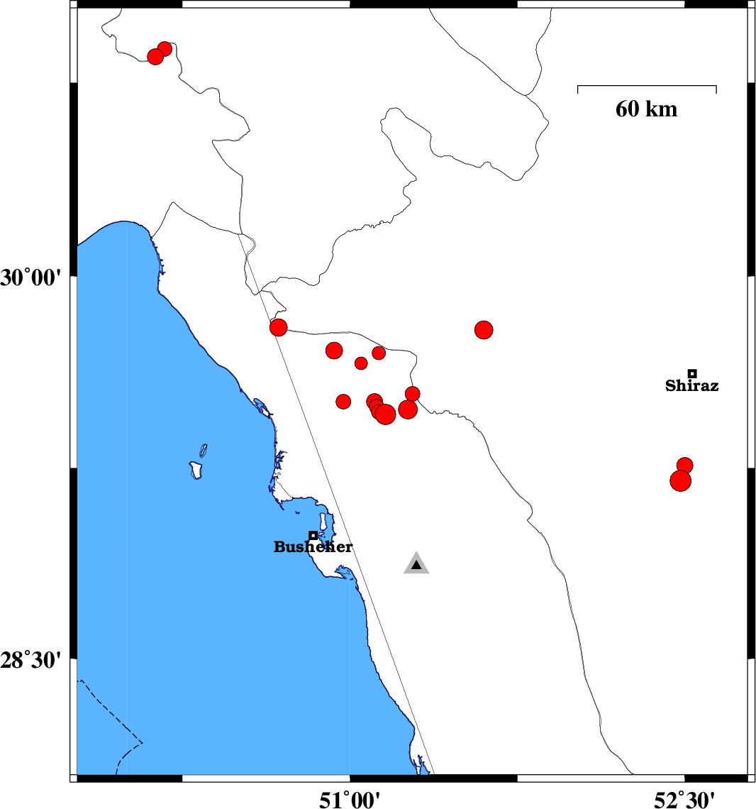 Bushehr Province, 43 km North-East of Bandar-e genaveh | |