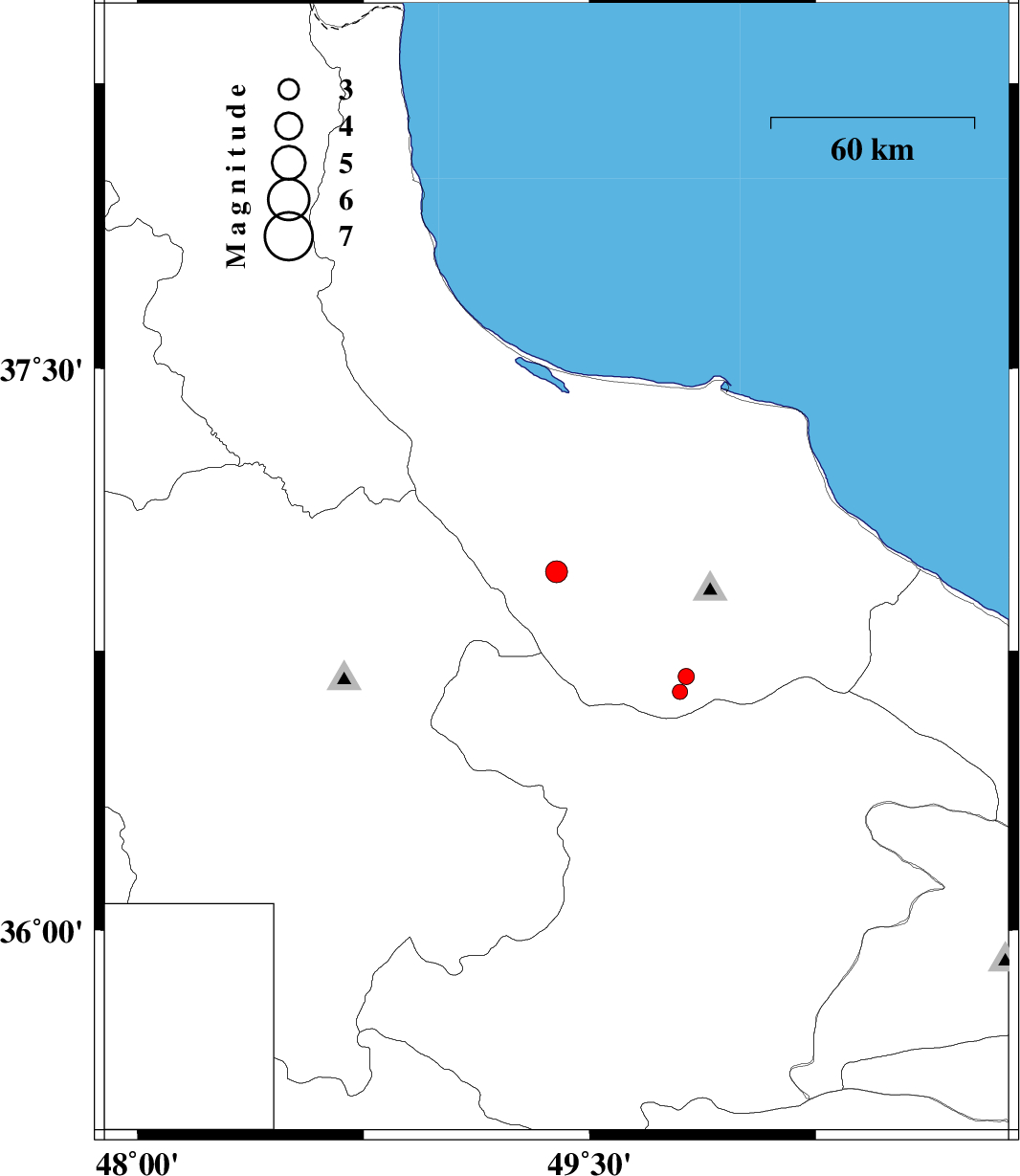 | 2012/10/27 | 10:59:46.9 | 14:29:46.9 | 36.96 | 49.39 | 15 | ML:3.2 | Gilan Province, 16 km North of Rudbar | ||