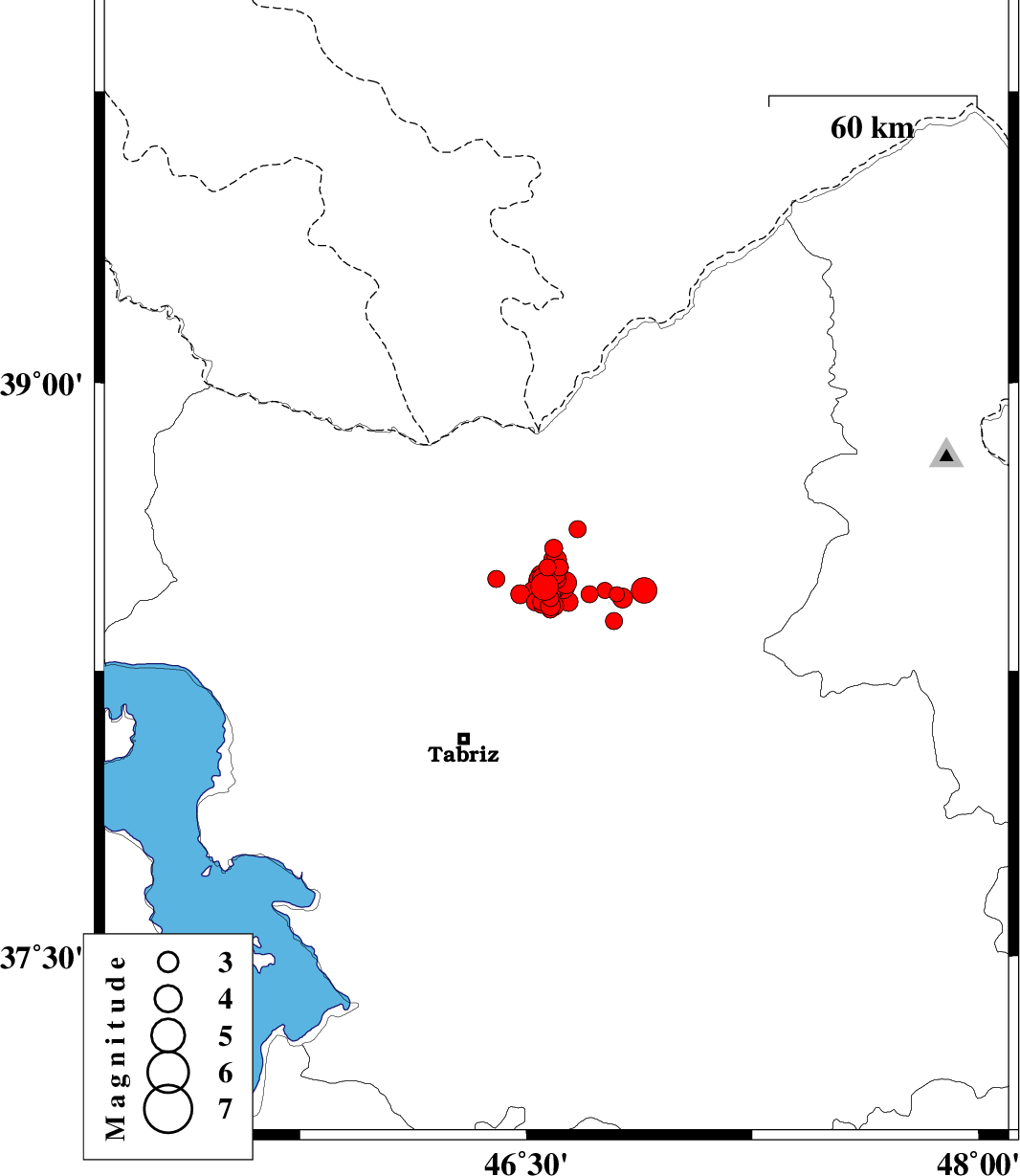 2012/11/07 07:32:20.8 11:02:20.8 38.4946.616 ML:2.8 Azarbaijan Sharghi Province, 42 km West of Ahar