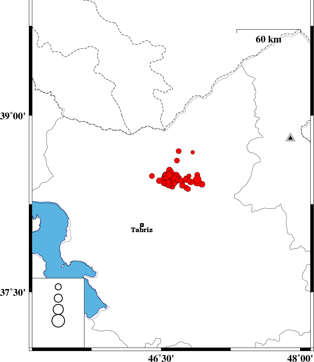 2012/11/07 07:32:20.8 11:02:20.8 38.4946.616 ML:2.8 Azarbaijan Sharghi Province, 42 km West of Ahar