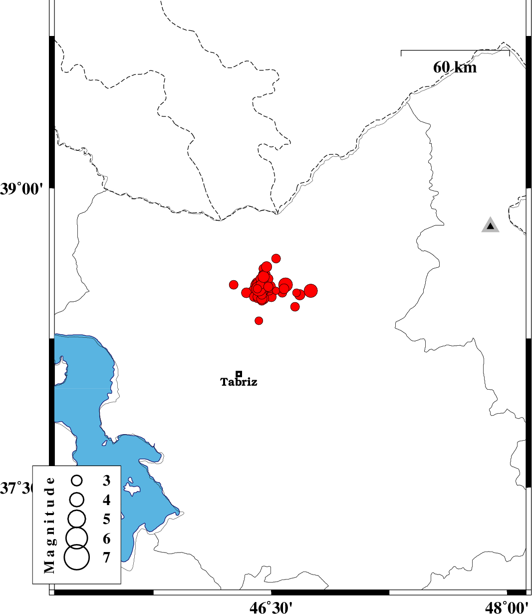 2012/11/07 07:32:20.8 11:02:20.8 38.4946.616 ML:2.8 Azarbaijan Sharghi Province, 42 km West of Ahar