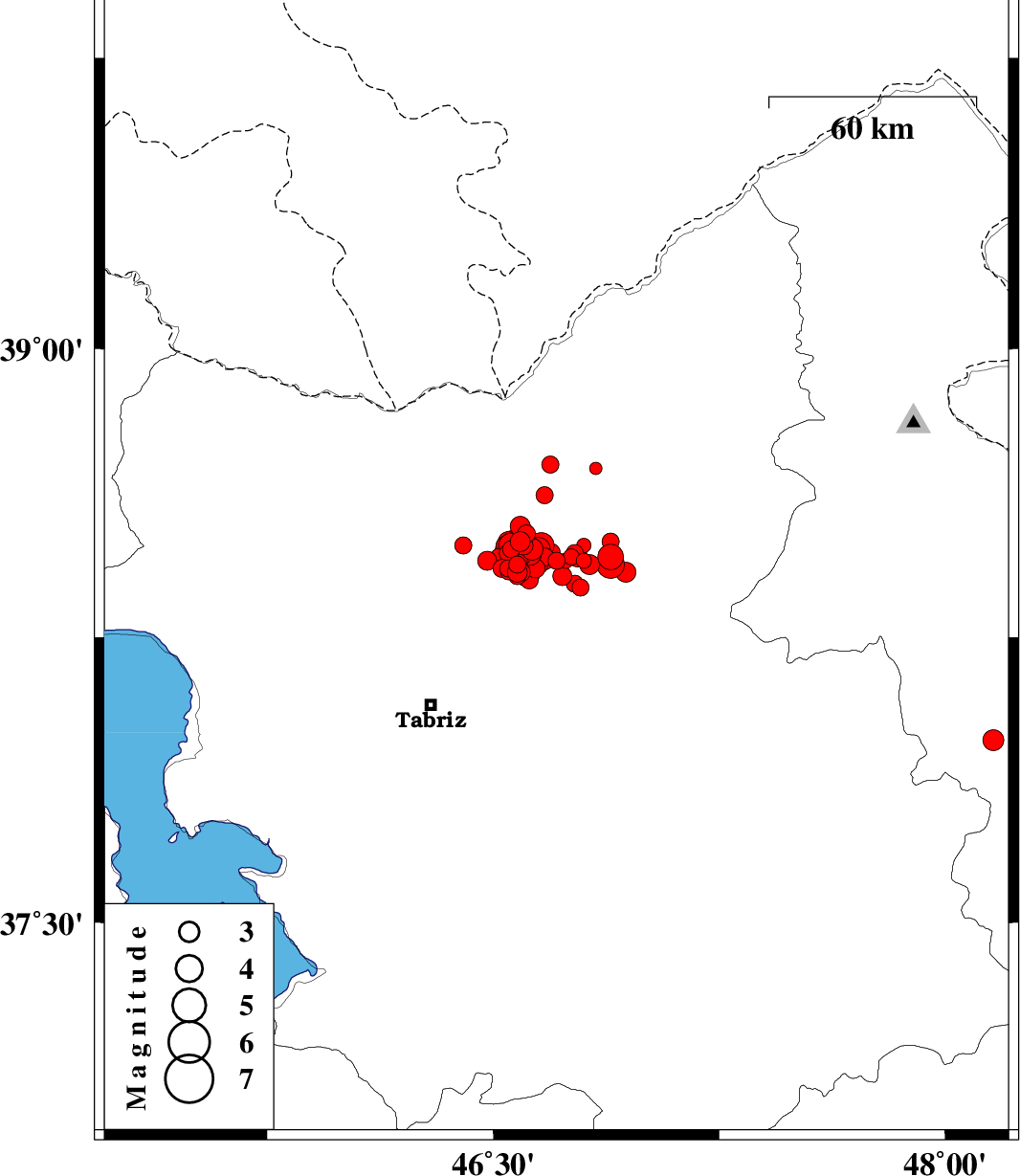 2012/11/07 07:32:20.8 11:02:20.8 38.4946.616 ML:2.8 Azarbaijan Sharghi Province, 42 km West of Ahar