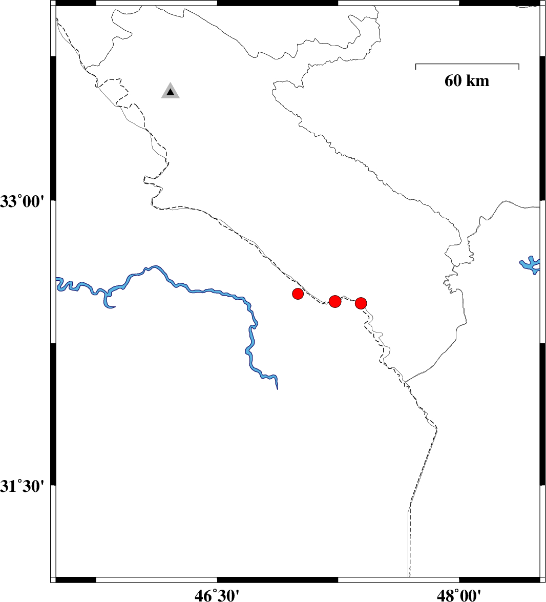| 2012/12/12 | 02:13:30.5 | 05:43:30.5 | 32.46 | 47.39 | 36 | ML:3.2 | 28 km South-East of Dehloran |