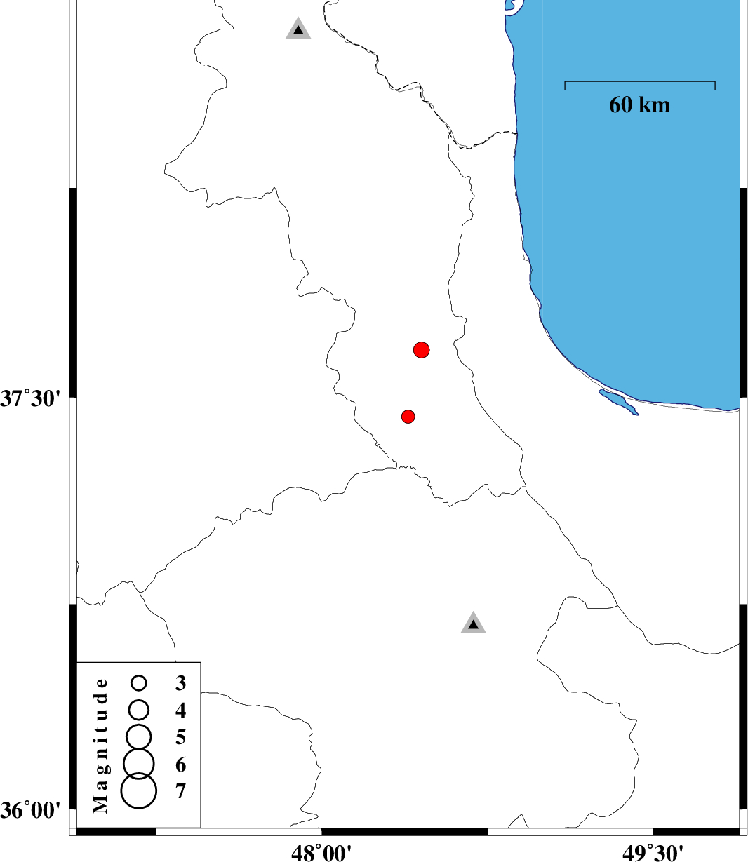 | 2012/12/30 | 06:41:18.1 | 10:11:18.1 | 37.67 | 48.45 | 14 | ML:3.2 | Ardebil Province, 6 km Givi |