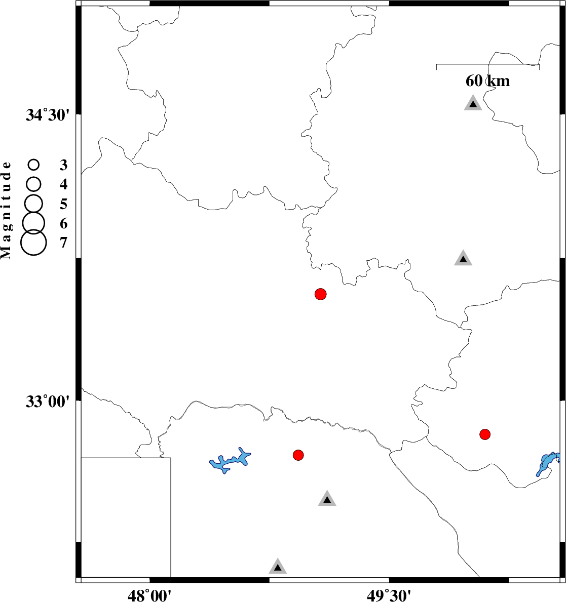 | 2013/01/13 | 09:07:45.6 | 12:37:45.6 | 32.71 | 48.93 | 14 | ML:3 | Khoozestan Province, 39 km North-West of Lali | ||