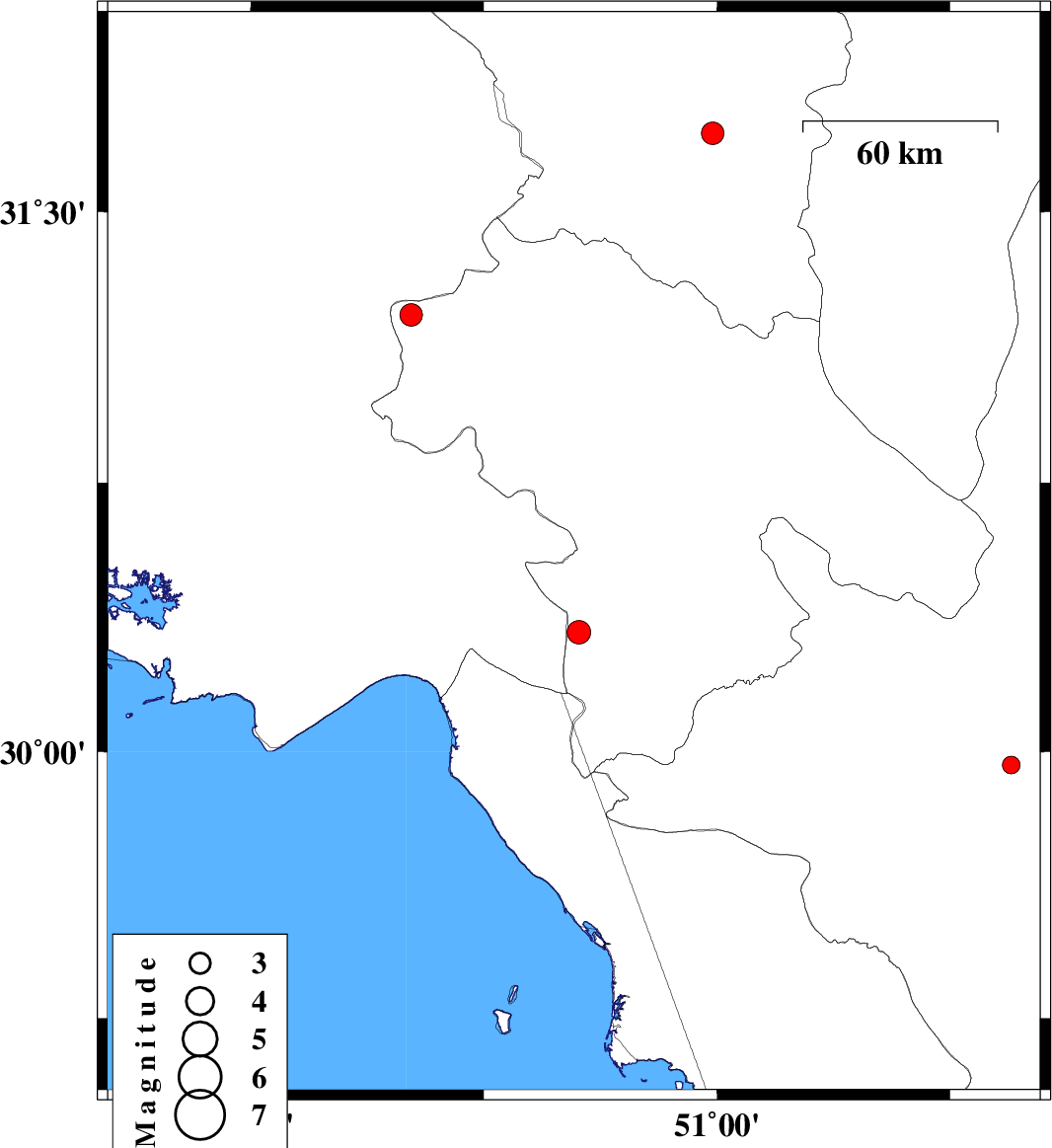 | 2013/01/18 | 01:12:47.4 | 04:42:47.4 | 31.93 | 50.97 | 46 | ML:3.2 | Chaharmahal Bakhtiari Province, 31 km West of Borujen |