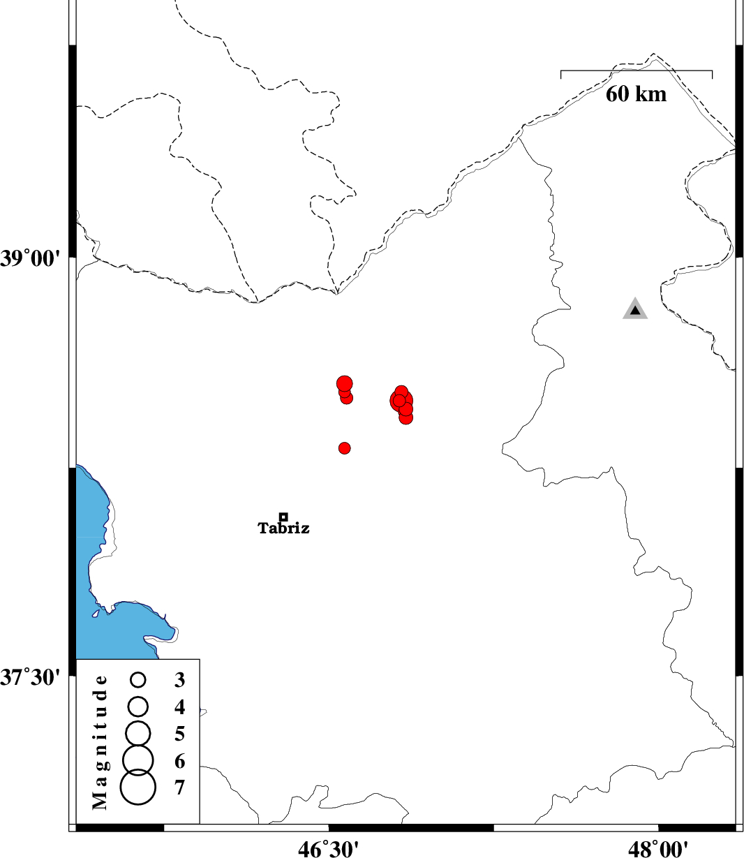 2013/01/25 03:06:22.4 06:36:22.4 38.5546.5715 ML:3.2 Azarbaijan Sharghi Province, 45 km West of Ahar