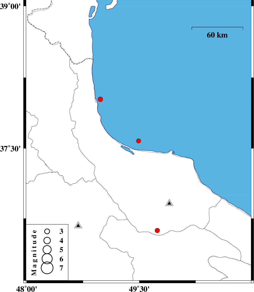 | 2013/01/23 | 20:52:08.8 | 00:22:08.8 | 38.02 | 48.98 | 14 | ML:3 | Caspian Sea, 25 km North of Hashtpar |