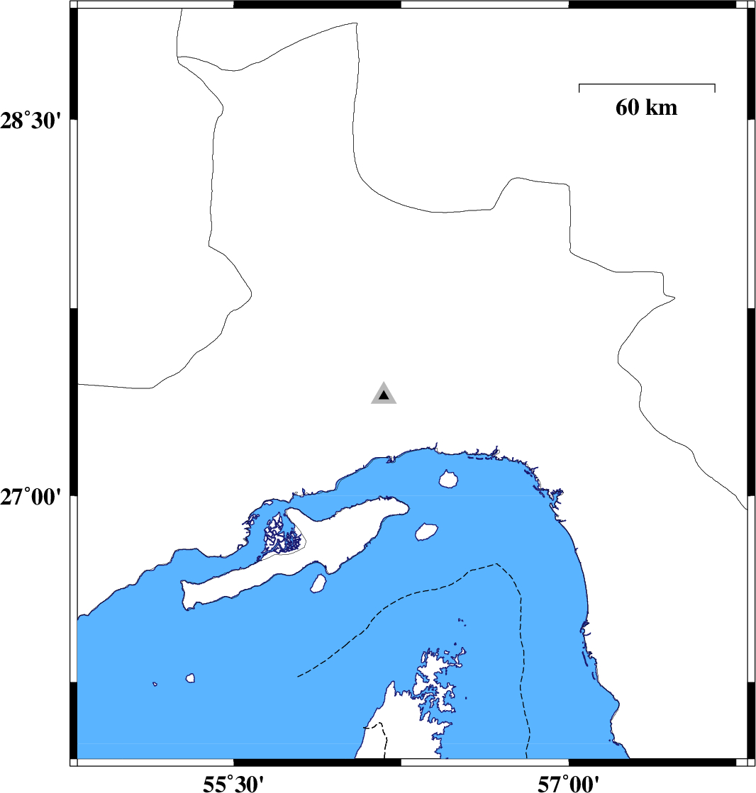 | 2013/01/24 | 09:28:32.3 | 12:58:32.3 | 27.78 | 56.65 | 15 | ML:4.2 | Hormozgan Province, 70 km North-West of Dehbarez | ||