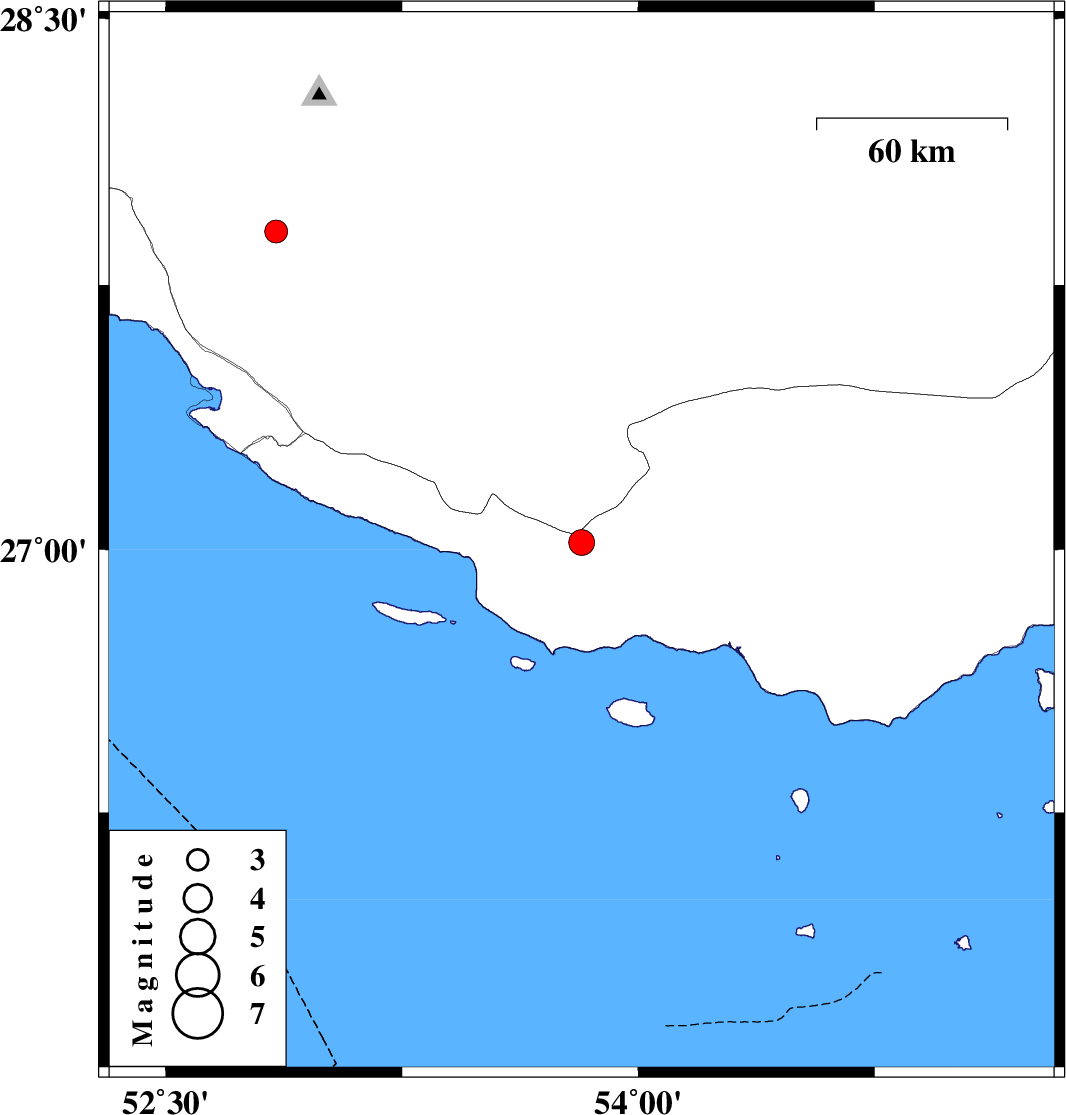 | 2013/02/22 | 09:59:23.9 | 13:29:23.9 | 27.9 | 52.85 | 25 | ML:3.3 | Fars Province, 39 km North of Mehr |