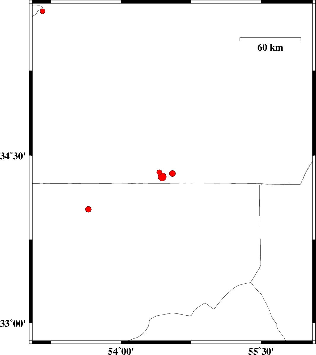 Map Region : lat:32.84-35.84  lon:53.05-56.05