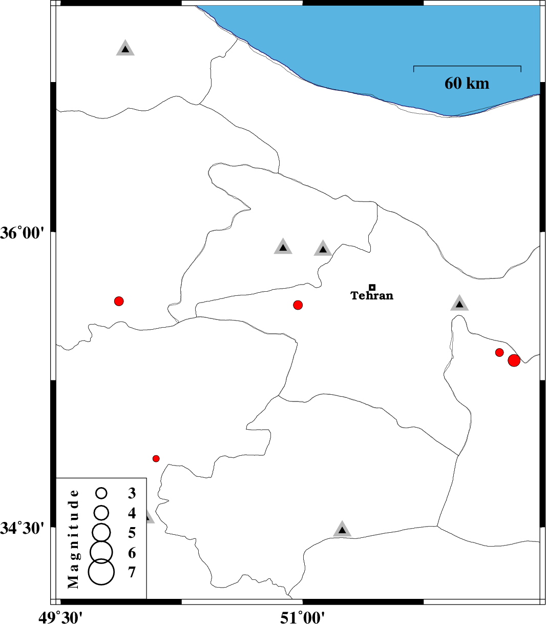 | 2013/03/16 | 07:33:33.0 | 11:03:33.0 | 35.35 | 52.31 | 6 | ML:3.4 | Semnan Province, 15 km North of Garmsar | ||