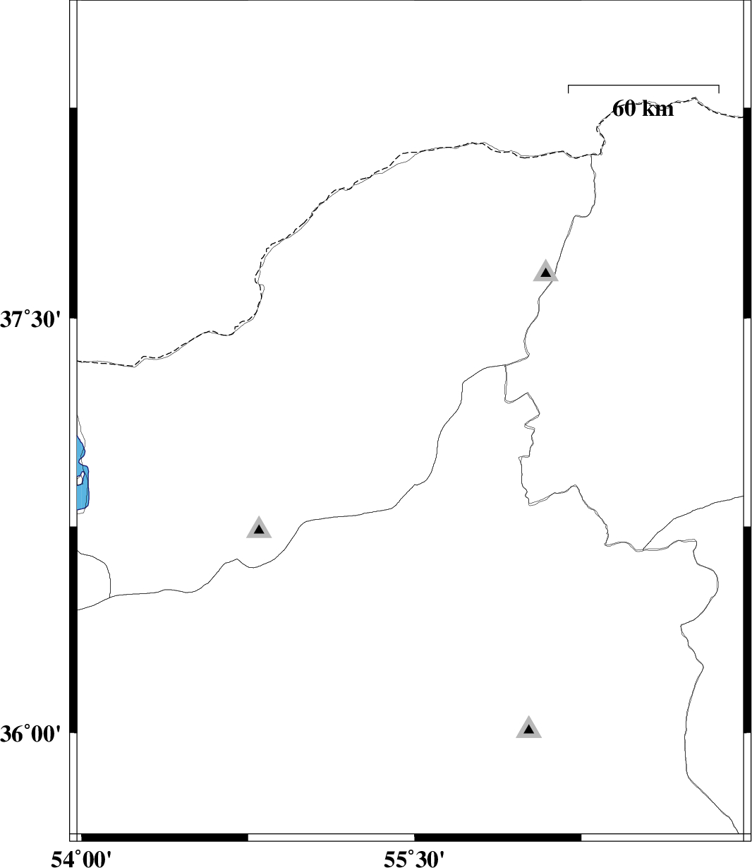 | 2013/03/25 | 13:39:24.0 | 18:09:24.0 | 37.13 | 55.48 | 14 | ML:2.2 | Golestan Province, 14 km South of Minodasht | ||