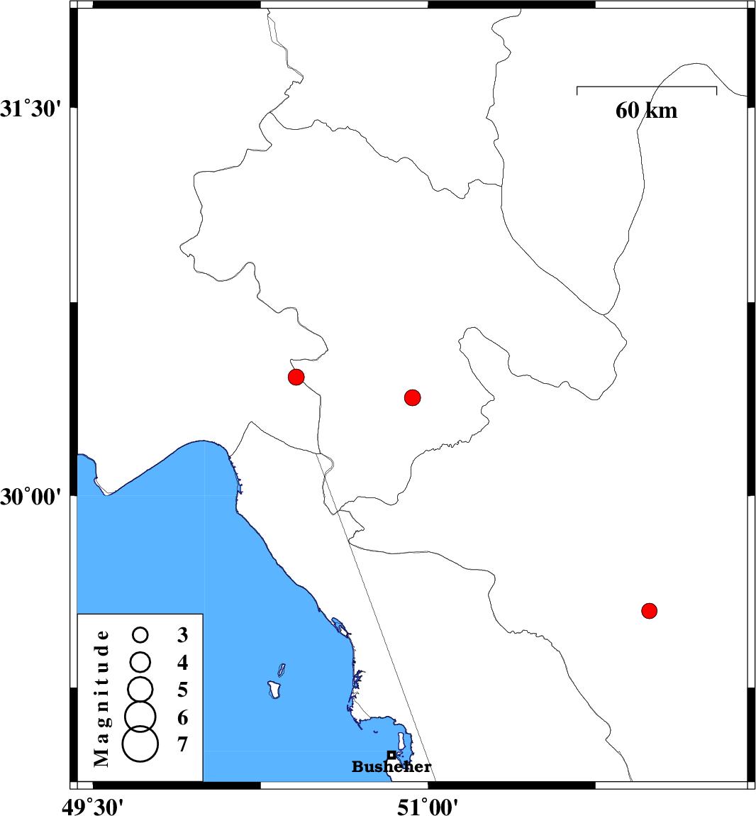 | 2013/03/23 | 11:02:39.8 | 15:32:39.8 | 29.55 | 51.99 | 17 | ML:3.1 | Fars Province, 33 km East of Kazerun |
