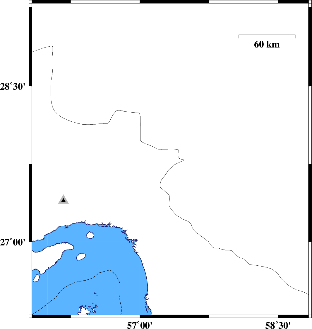 | 2013/04/05 | 20:10:27.2 | 00:40:27.2 | 27.79 | 57.55 | 15 | ML:3.1 | Kerman Province, 23 km South-West of Kahnuj | ||