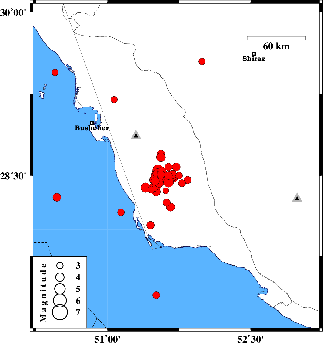 2013/04/09 12:31:37.6 17:01:37.6 28.5151.514 ML:3.7 Bushehr Province, 20 km South-East of Khormog