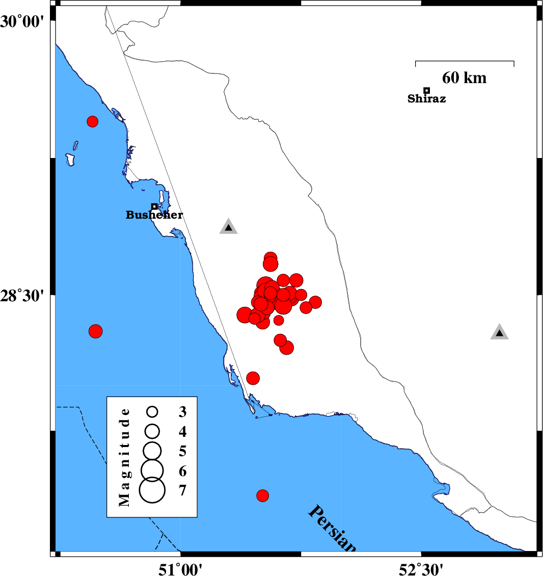 2013/04/09 15:26:10.8 19:56:10.8 28.4651.8436 ML:3.5 Bushehr Province, 50 km South-East of Khormog