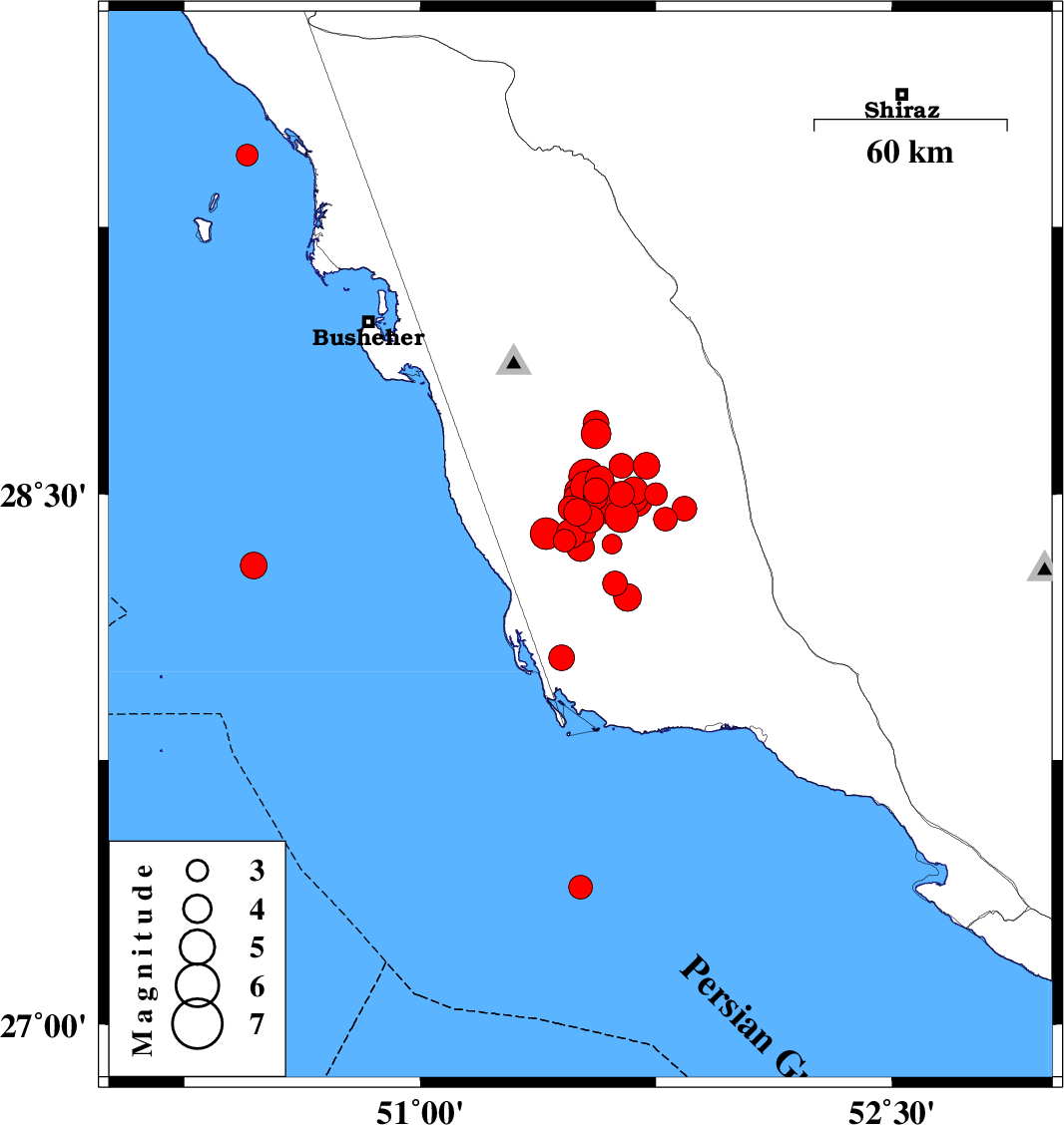 2013/04/09 15:26:10.8 19:56:10.8 28.4651.8436 ML:3.5 Bushehr Province, 50 km South-East of Khormog