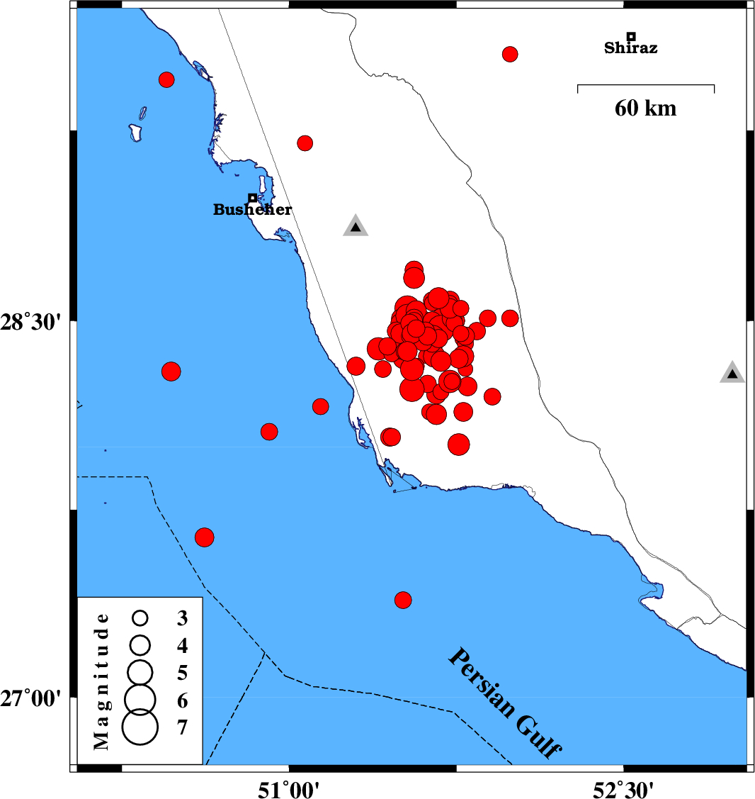 2013/04/09 15:26:10.8 19:56:10.8 28.4651.8436 ML:3.5 Bushehr Province, 50 km South-East of Khormog