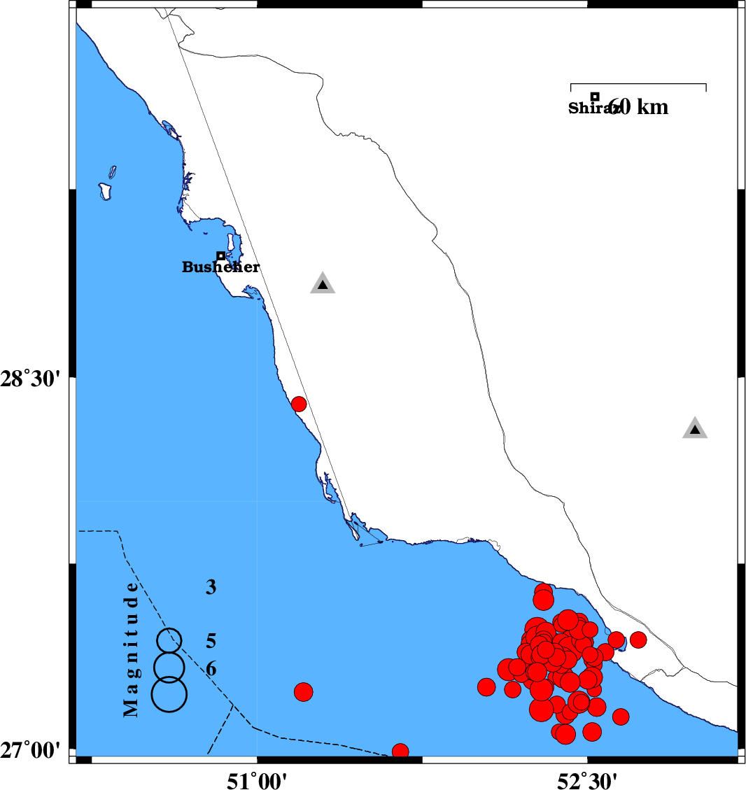 2013/04/10 19:41:57.5 00:11:57.5 28.4551.5530 ML:3.9 Bushehr Province, 28 km South-East of Khormog
