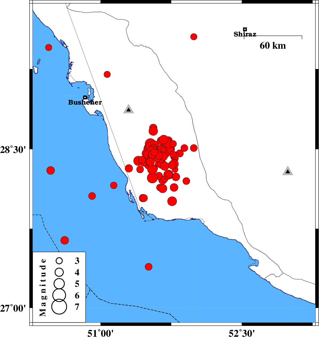 2013/04/09 15:26:10.8 19:56:10.8 28.4651.8436 ML:3.5 Bushehr Province, 50 km South-East of Khormog