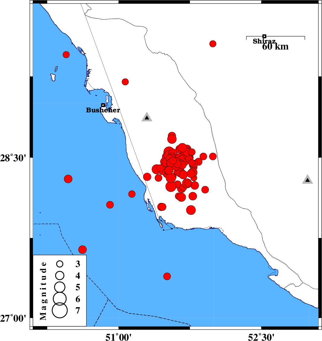 2013/04/10 19:41:57.5 00:11:57.5 28.4551.5530 ML:3.9 Bushehr Province, 28 km South-East of Khormog