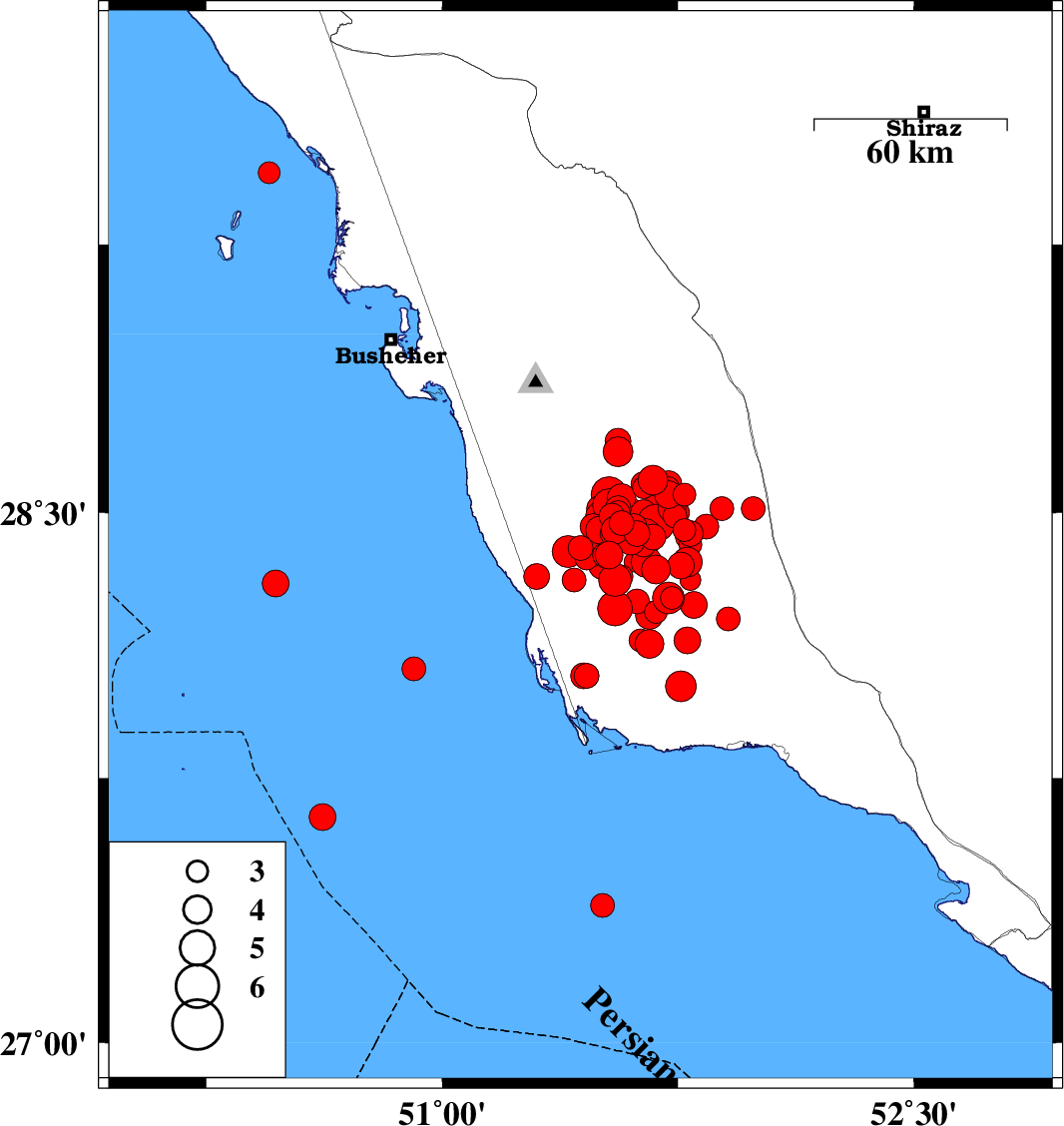 2013/04/10 19:41:57.5 00:11:57.5 28.4551.5530 ML:3.9 Bushehr Province, 28 km South-East of Khormog
