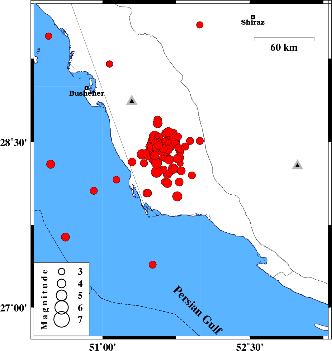 2013/04/10 19:41:57.5 00:11:57.5 28.4551.5530 ML:3.9 Bushehr Province, 28 km South-East of Khormog