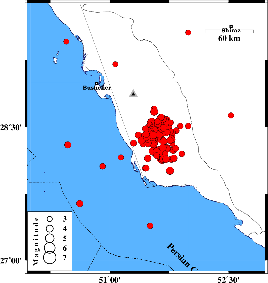 2013/04/11 02:43:01.1 07:13:01.1 28.5951.6317 ML:3.7 Bushehr Province, 26 km East of Khormog