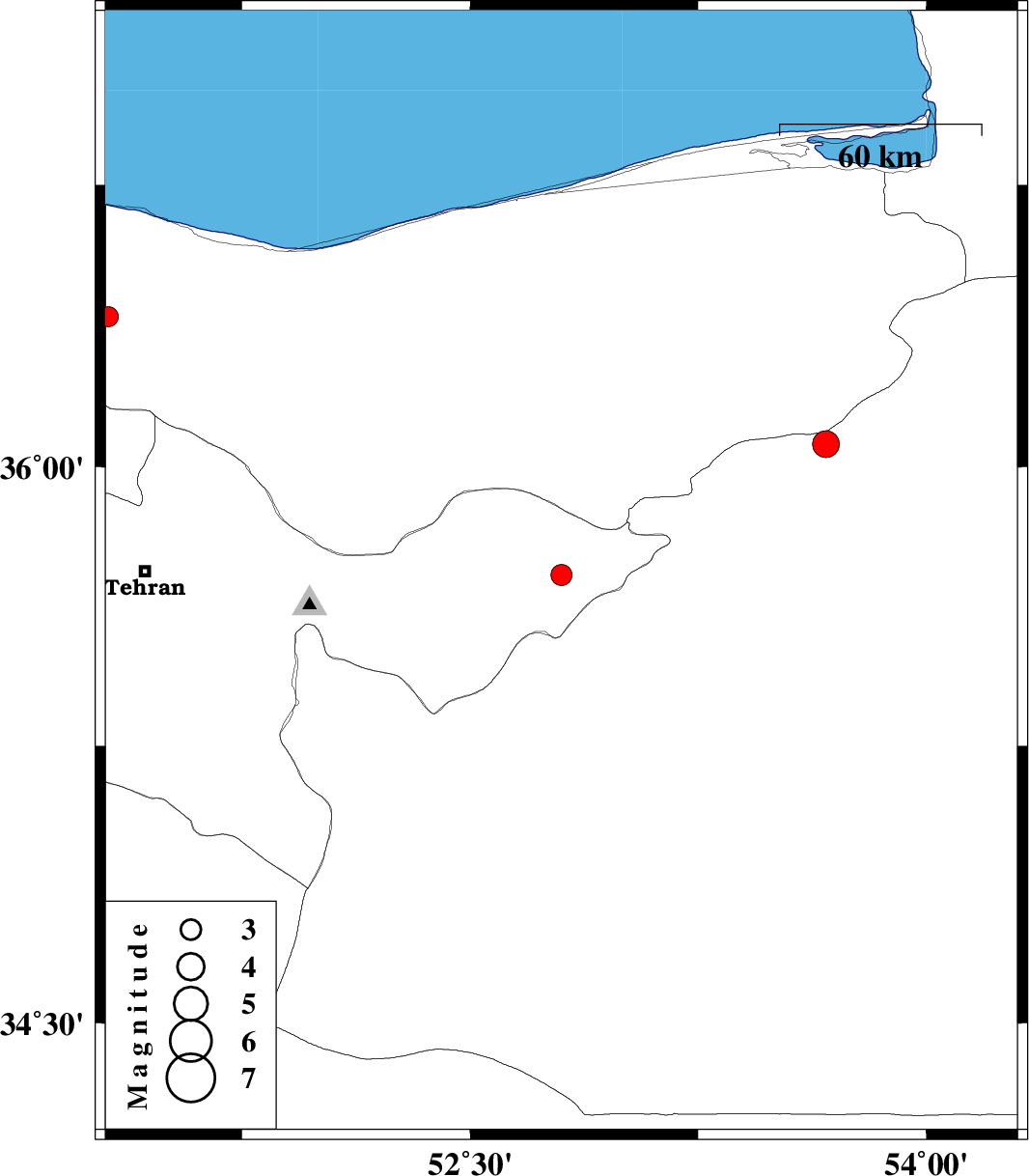 | 2013/04/10 | 01:29:36.8 | 05:59:36.8 | 36.06 | 53.67 | 15 | ML:3.9 | Semnan Province, 55 km East of Pol-E-Sefid |