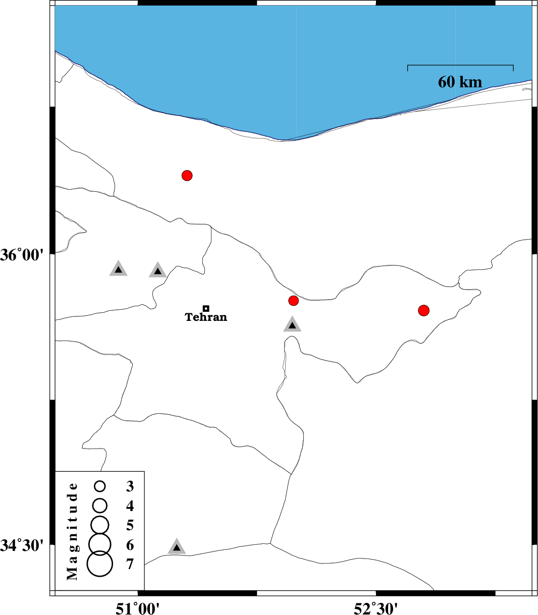 | 2013/04/19 | 10:07:12.0 | 14:37:12.0 | 35.76 | 51.98 | 14 | ML:2.8 | Tehran Province, 9 km Damavand | ||