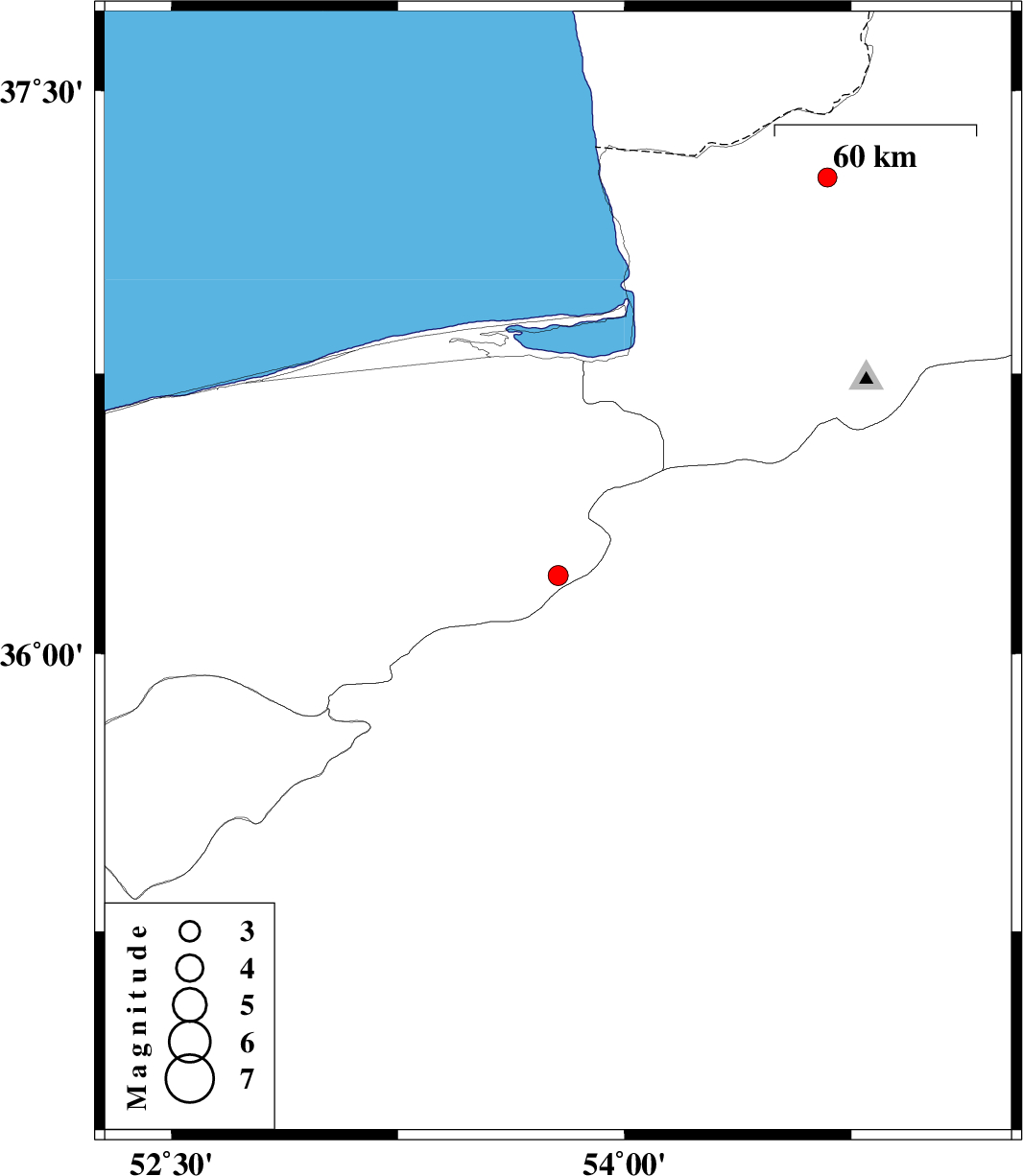 | 2013/04/24 | 02:47:56.1 | 07:17:56.1 | 36.21 | 53.78 | 18 | ML:3 | Mazandaran Province, 51 km West of Damghan | ||