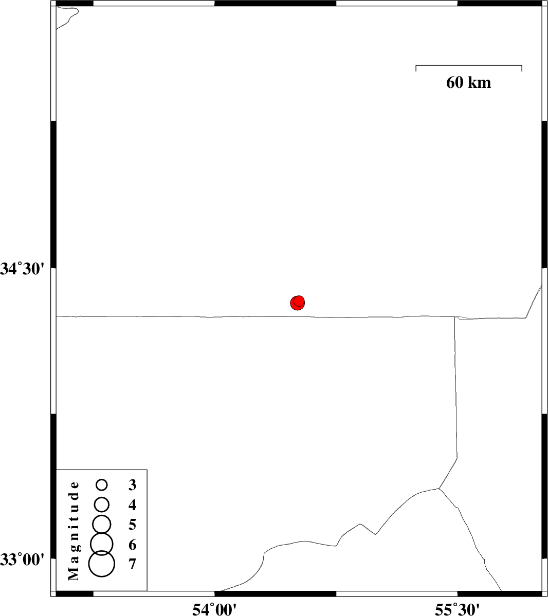 | 2013/05/07 | 20:23:00.3 | 00:53:00.3 | 34.32 | 54.51 | 14 | ML:4 | Semnan Province, 206 km South-East of Damghan |