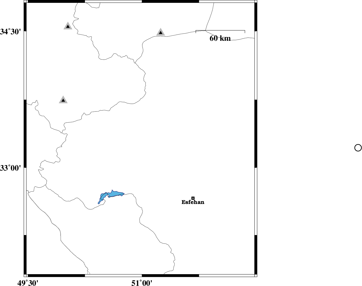 | 2013/05/20 | 18:09:42.9 | 22:39:42.9 | 33.31 | 50.98 | 15 | ML:2.6 | Esfahan Province, 62 km East of Khvansar | ||