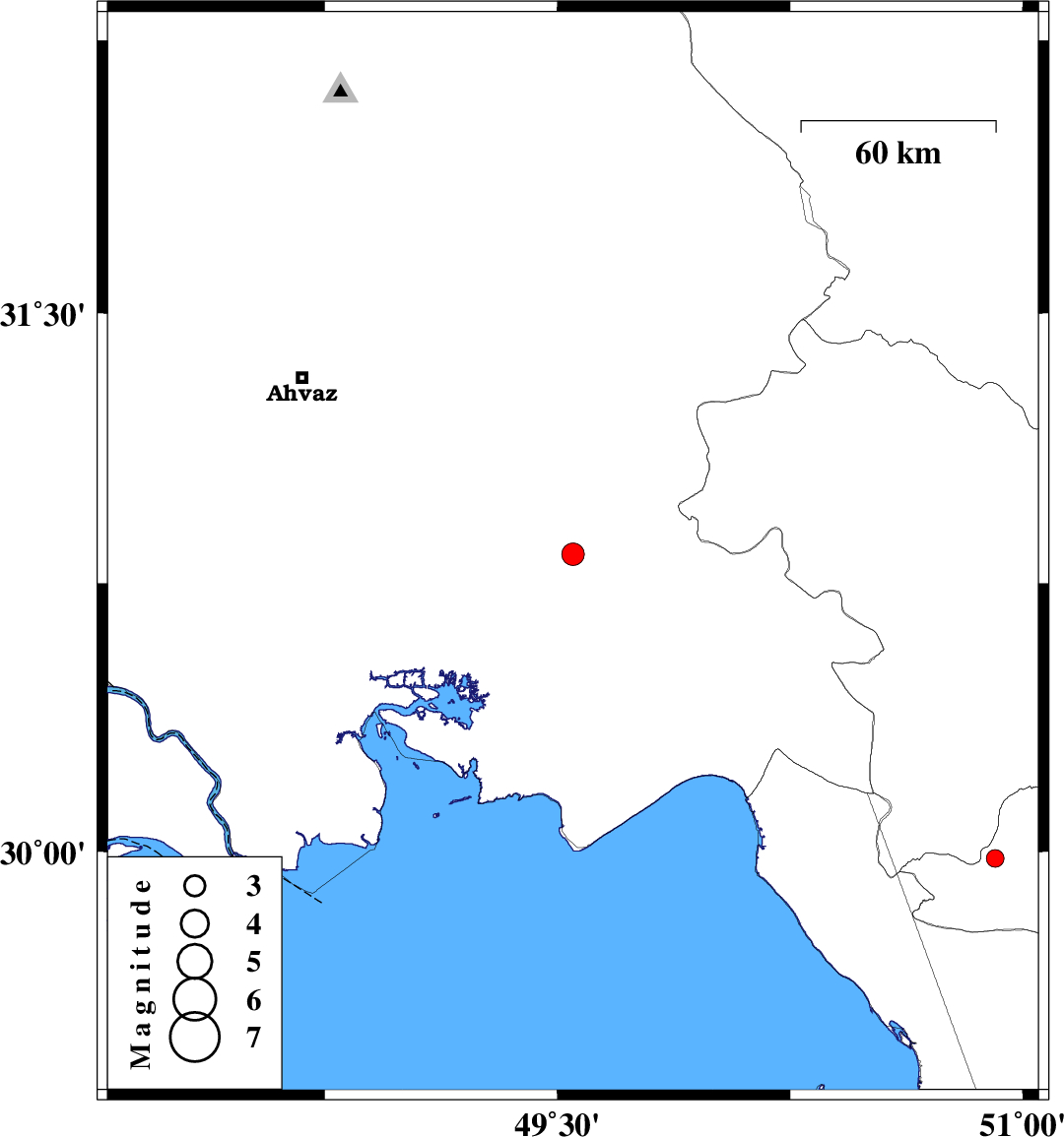 | 2013/05/21 | 17:24:02.4 | 21:54:02.4 | 30.83 | 49.55 | 18 | ML:3.2 | Khoozestan Province, 17 km West of Omidiyeh | ||