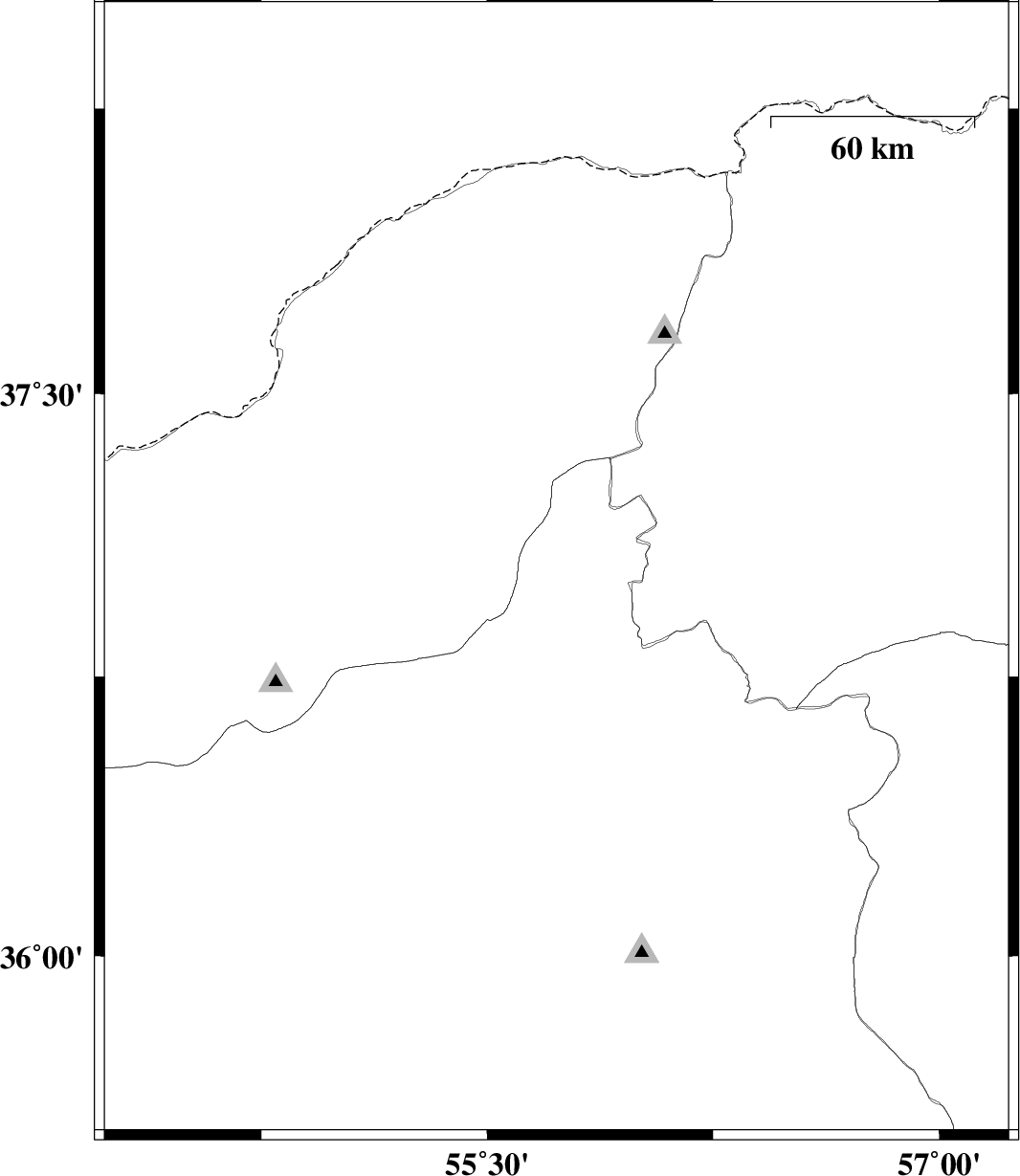 | 2013/05/21 | 05:30:25.4 | 10:00:25.4 | 37.12 | 54.55 | 18 | ML:3.3 | Golestan Province, 14 km North of Aq Qaleh |