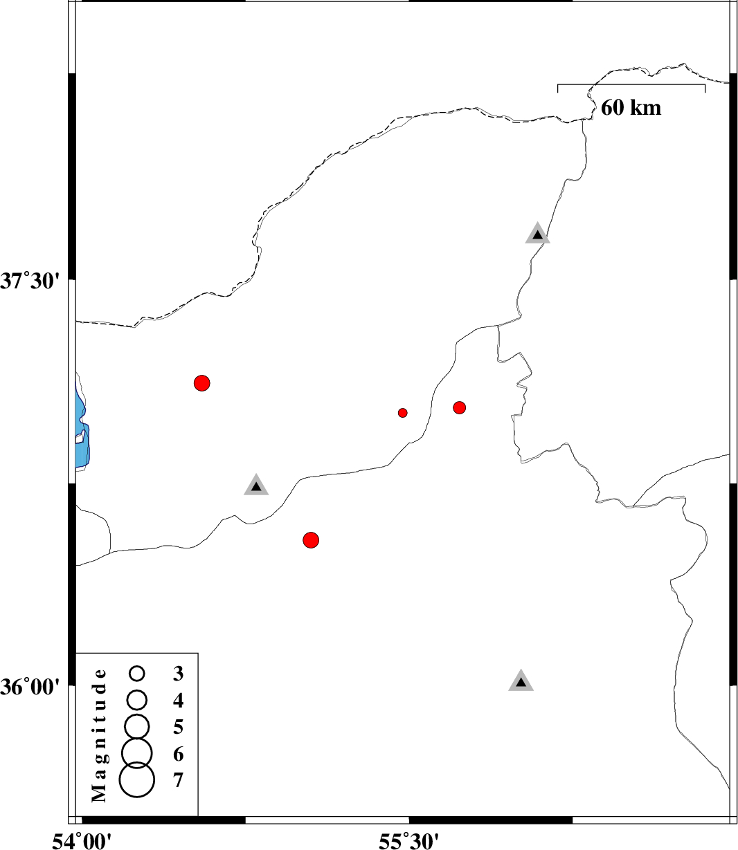 | 2013/05/09 | 21:10:06.3 | 01:40:06.3 | 36.54 | 55.05 | 14 | ML:3.2 | Semnan Province, 15 km North of Shahrud |