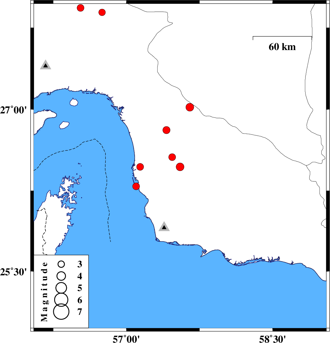 Oman Sea, 96 km South of Minab | |