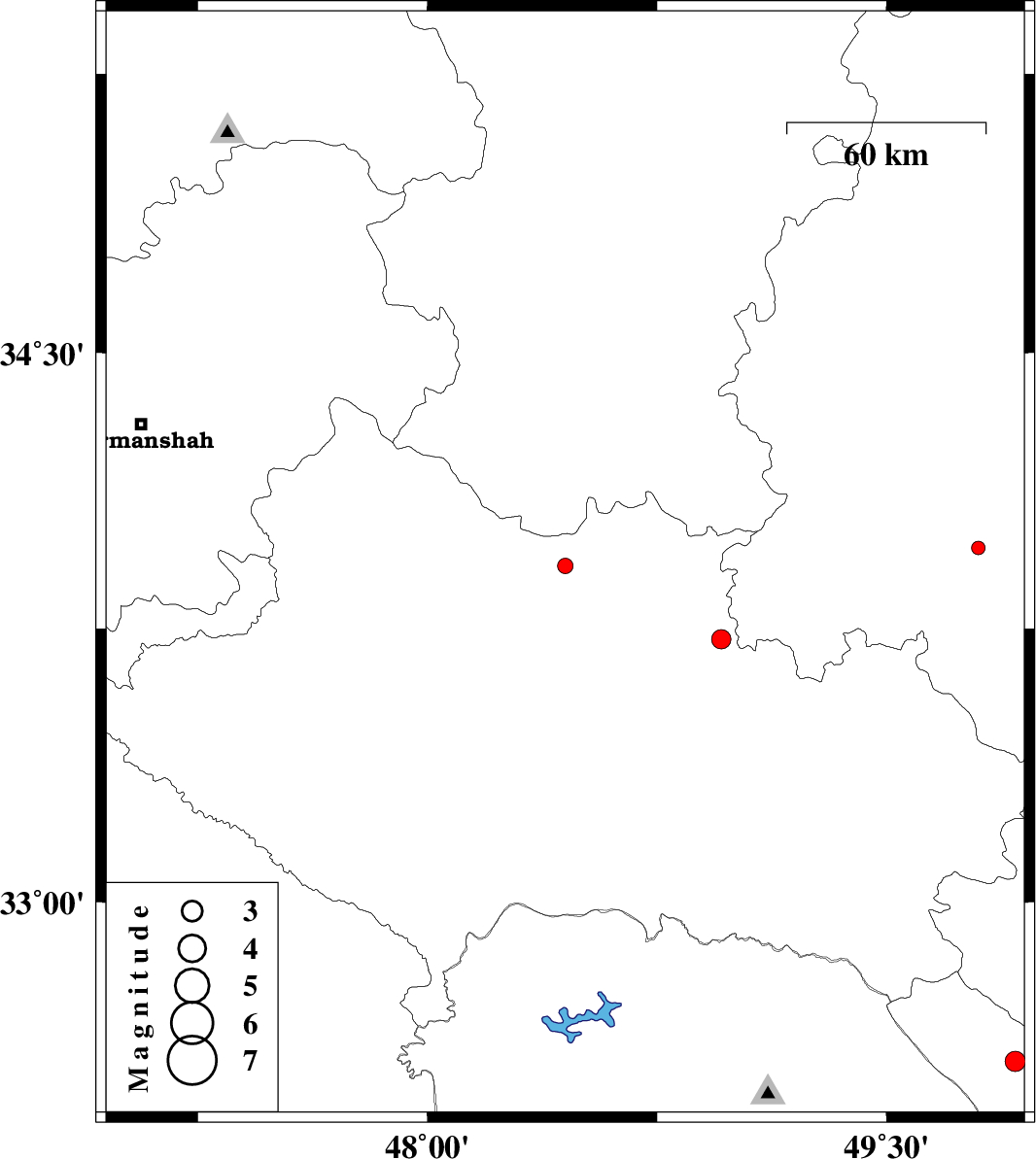 | 2013/06/23 | 12:14:52.4 | 16:44:52.4 | 33.92 | 48.45 | 30 | ML:2.3 | Lorestan Province, 15 km East of Aleshtar | ||